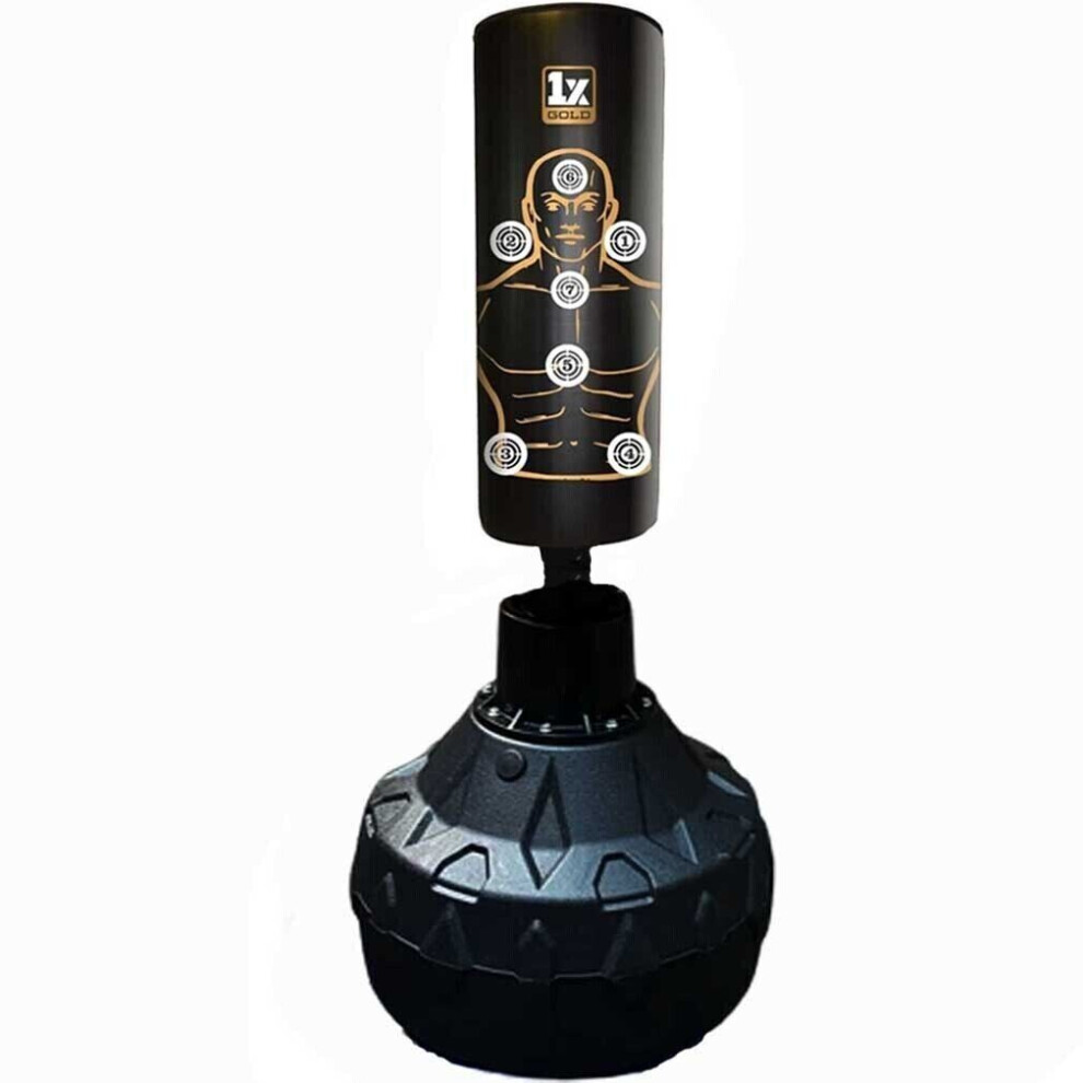 Inflatable Punch Bag for Kids & adult, 160cm Inflatable Boxing Bag Gloves, Free-standing Target Stand, Karate MMA, Martial Arts Punching Training Freestanding with Target Zones (BLack/Gold)