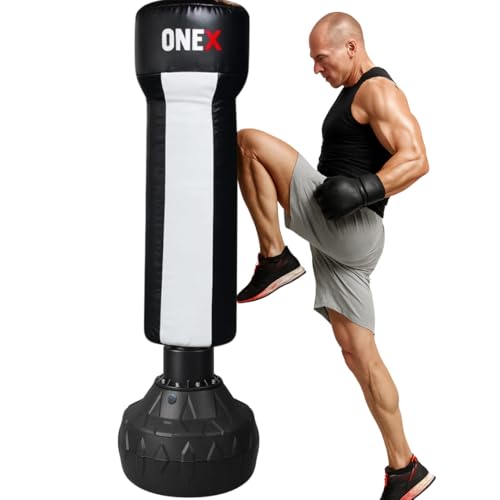 ONEX Punch Bag Free Standing Adult - 5ft filled Uppercut Heavy Duty Boxing Bag with Stand for Punching Kickboxing MMA Martial Arts karate Gym & Home Fitness Workout