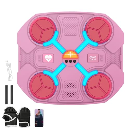 Music Boxing Machine Kids, Smart Music Boxing Machine with Gloves, Musics with Boxings Gloves, Smarts Machines for Kids & Adults, Smart Bluetooth Pad Wall Mounted Set for Home, Office, Gym (6-Pink)