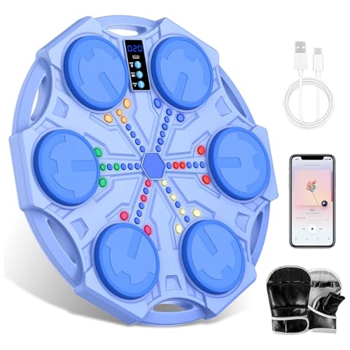 Music Boxing Machine, Smart Bluetooth Boxing Machine with Gloves, 5 Speeds & 3 Game Modes with Score Display, Automatic Counting, Wall Mounted Music Punching Machines with LED Lights for Kids (Blue)