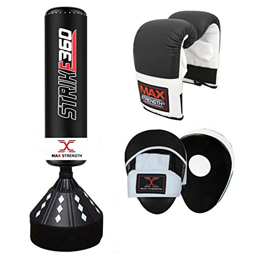 Free Standing 6ft Boxing Punch Bag Target Heavy Duty Sparring & MMA Fitness Boxing Kick Gym Training Punching Bag Stand with Suction Cup Base (Black) (Strike 360 - Black/White, 5.5ft)