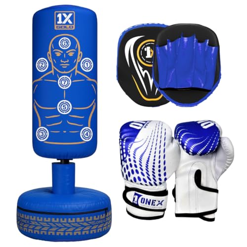 ONEX Free Standing Punch Bag - Heavy Duty Adult Pedestal Stand Boxing Bag for Kickboxing MMA Martial Arts karate Gym & Home Fitness Workout (Blue)