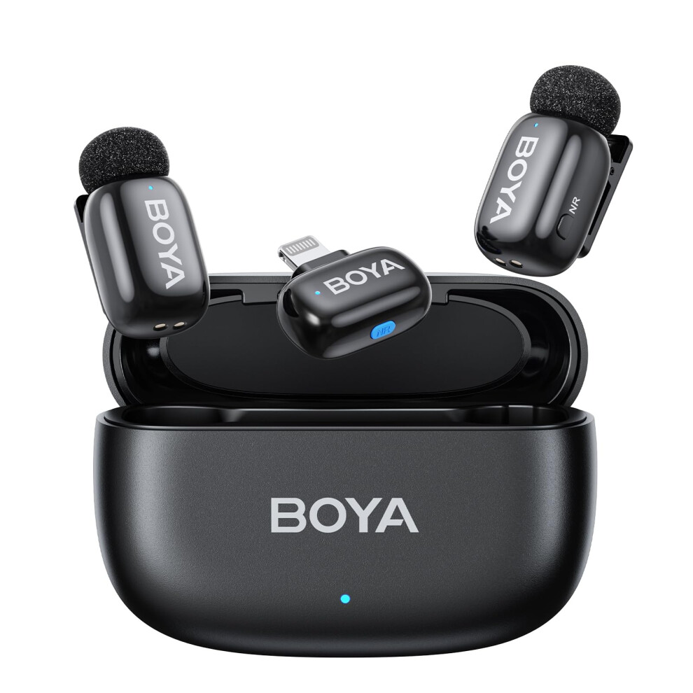 BOYA mini Microphone wireless for iPhone, 5g Ultralight, Lavalier Microphone, AI Voice Changer, 3-Level Noise Reduction, 30h Charging Case, Lapel Mic, Clip on Mic with Lightning Plug