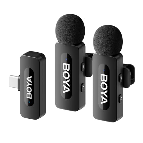 BOYA Wireless Lavalier Microphone for Android, Noise Cancelling USB-C Microphone with Charging Case&100m Transmission, 32H Working Time for Android