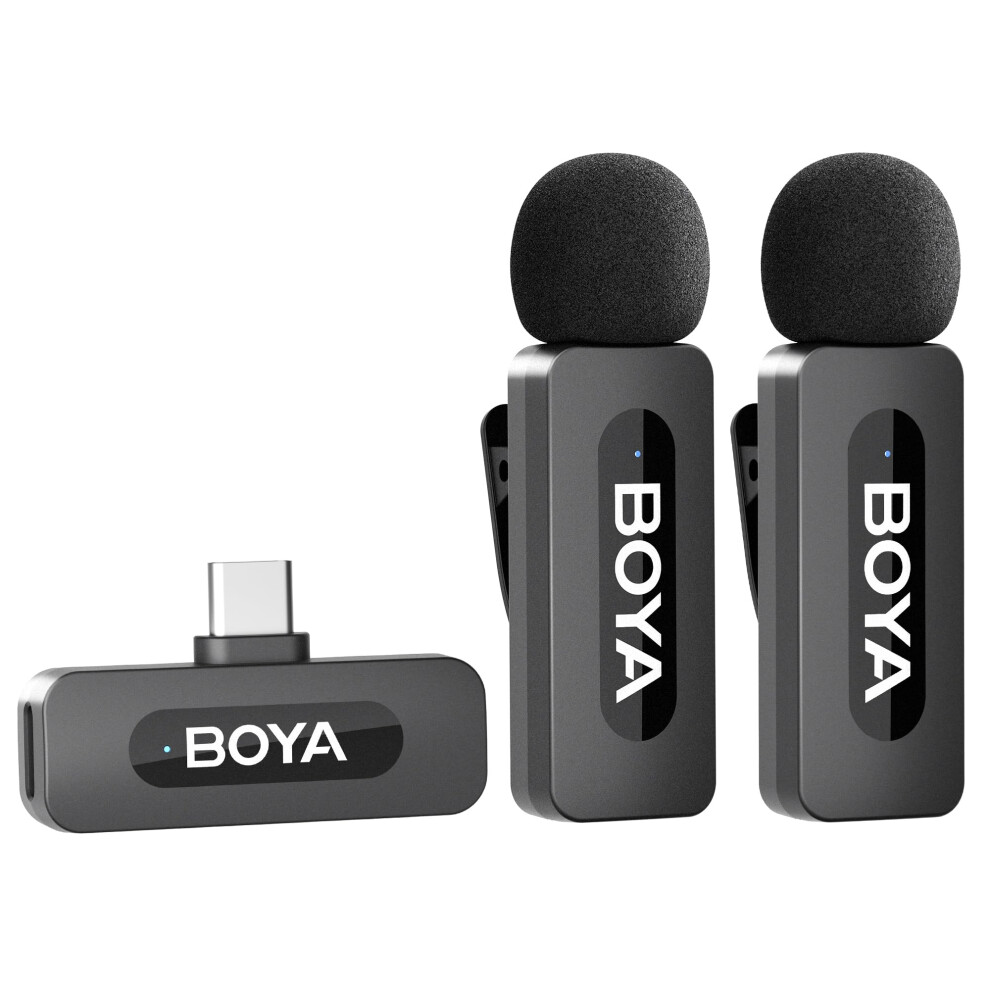 BOYA BY-V20 New USB C Wireless Lavalier Microphone for Android PC, 100m Range, Mini Dual Lapel Microphone for Video Recording, Vlog, YouTube, TikTok Video Recording