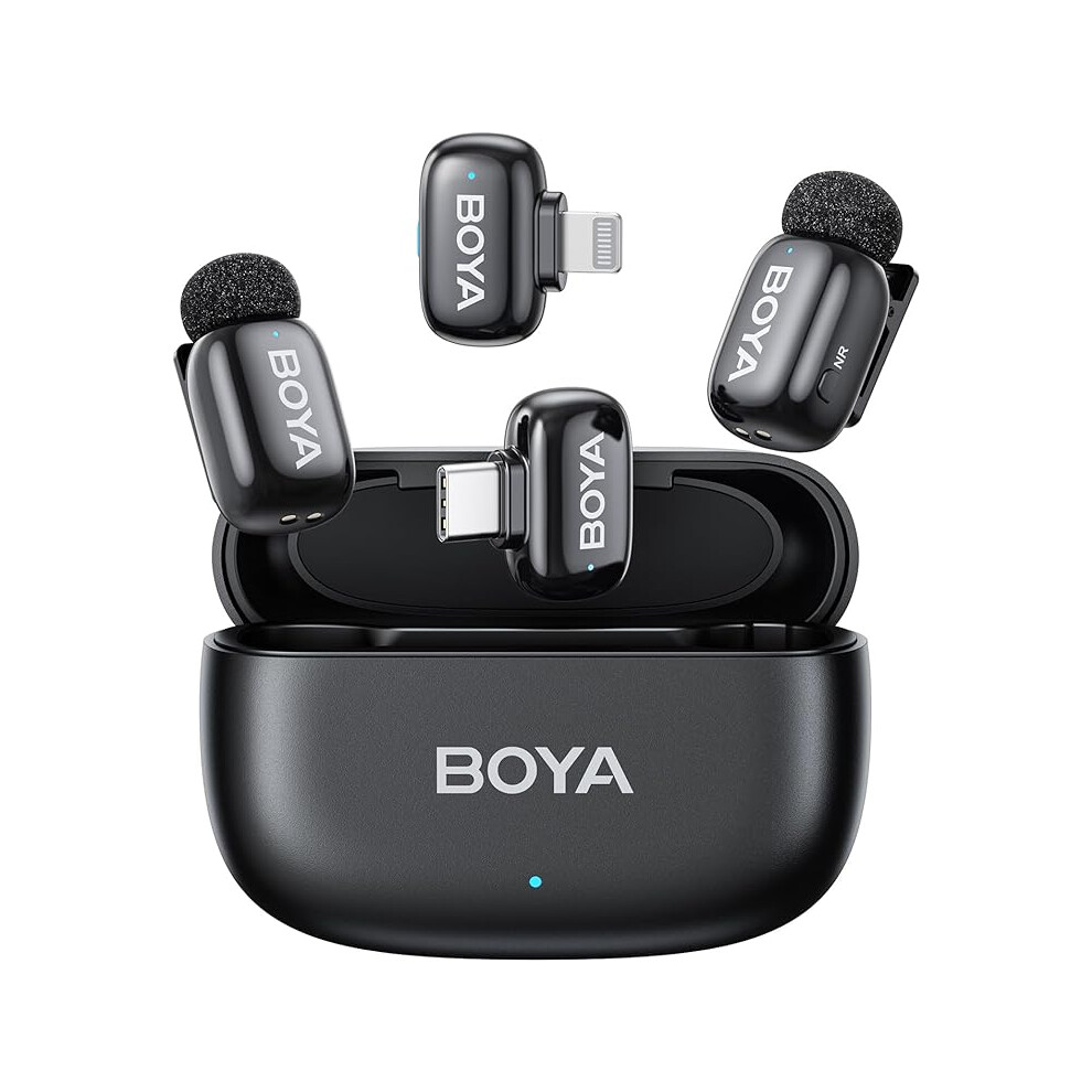 BOYA BY-V30 Microphone Wireless for iPhone 15/16, Android, Mini Microphone, 36h Use, Each TX 9h, Noise Cancelling, USB-C Lavalier Mic, Mute Mode, 360° Clip on wireless Lapel Mic for Video Recroding