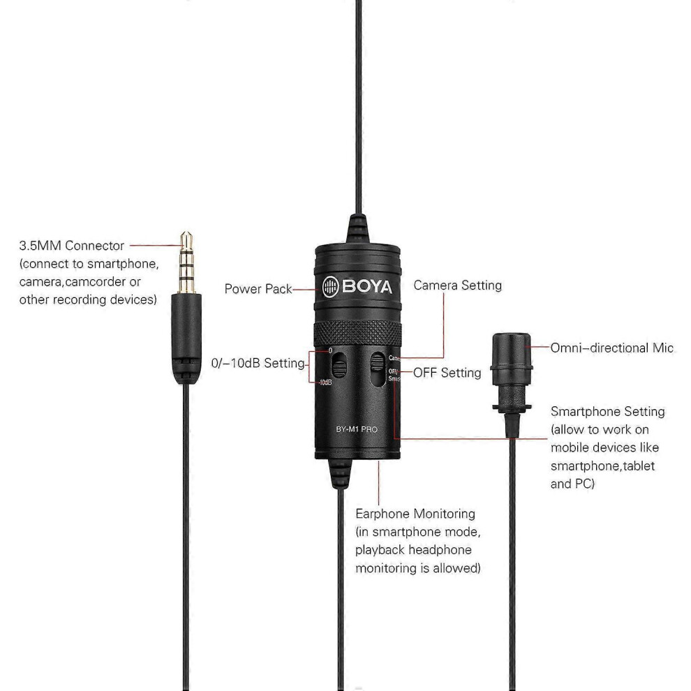 (As show, One size) BOYA BY-M1 Pro Omni-Directional Lavalier Microphone Single Head Clip-on Condenser Mic for Smartphone DSLR Camcorder Audio Recorder