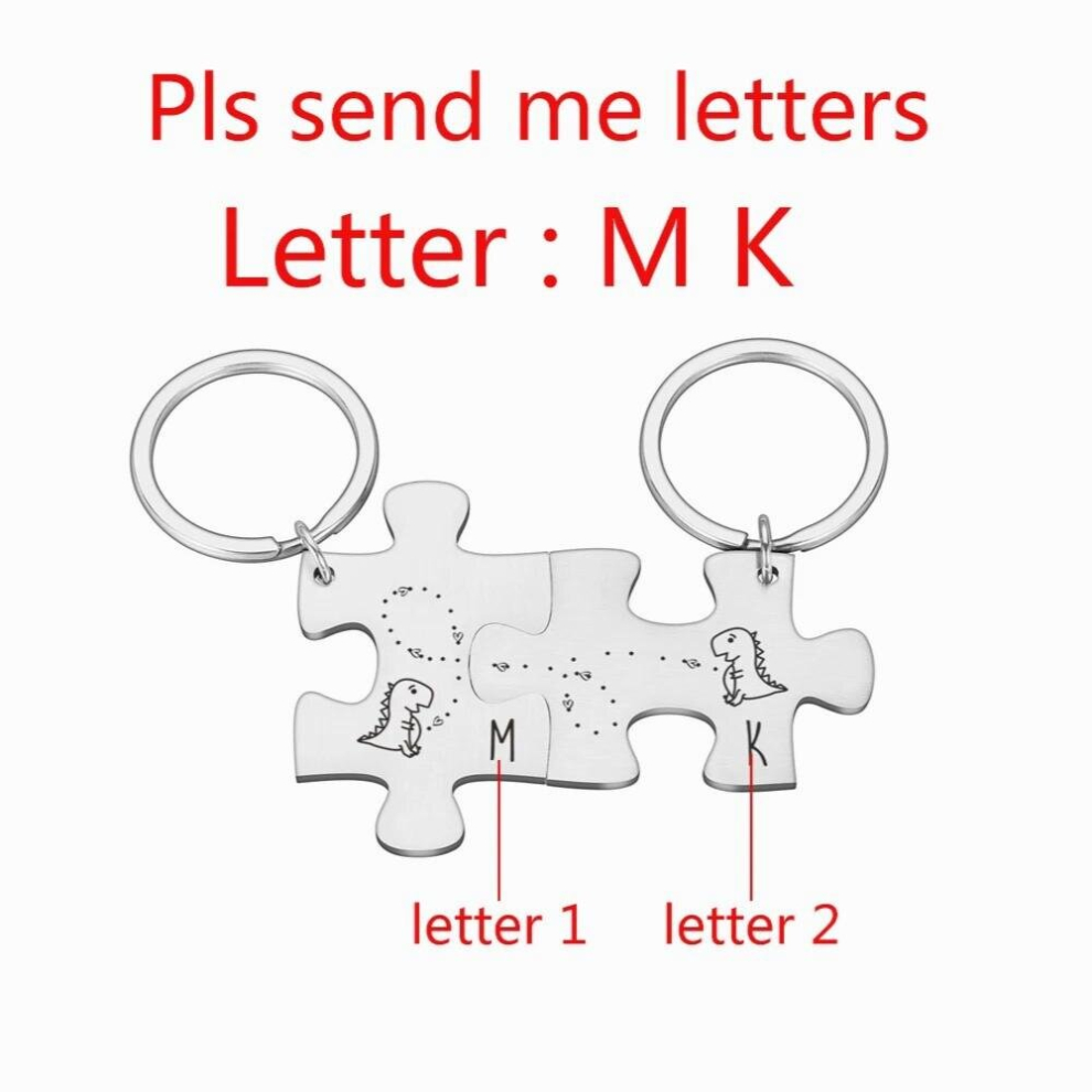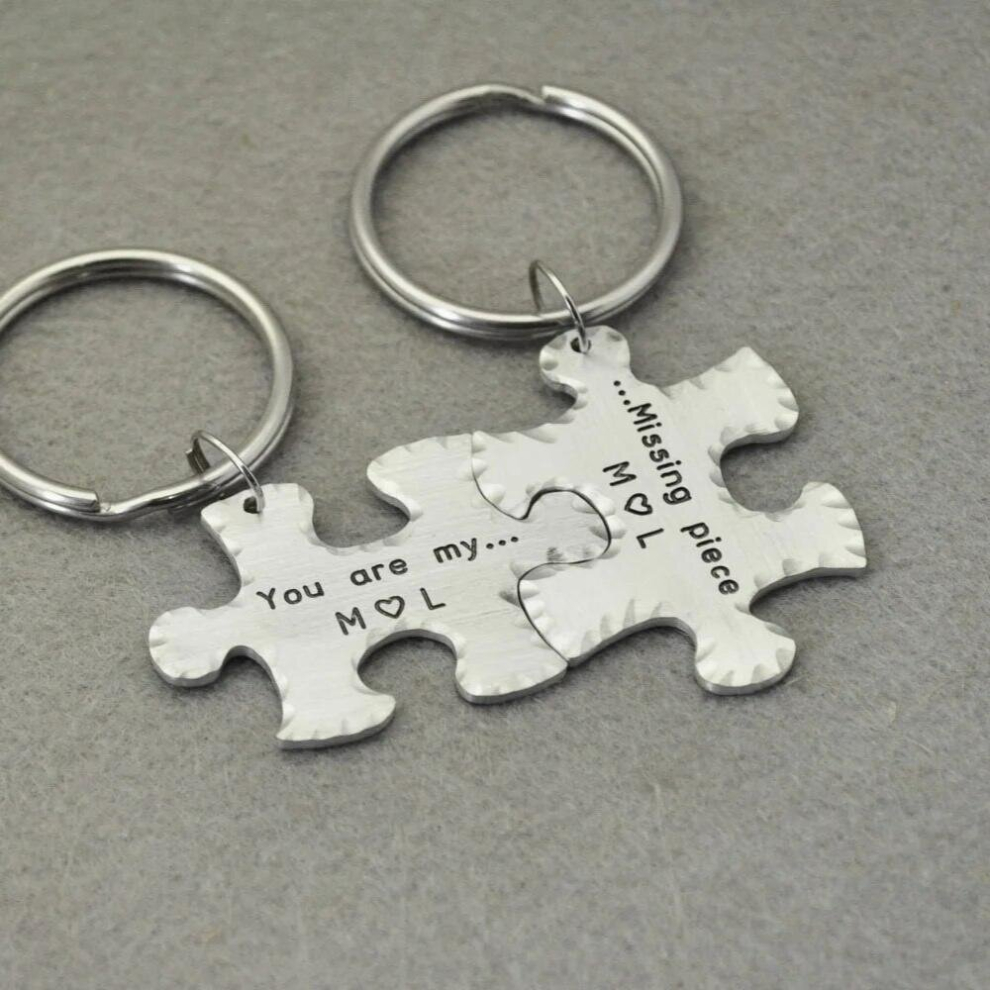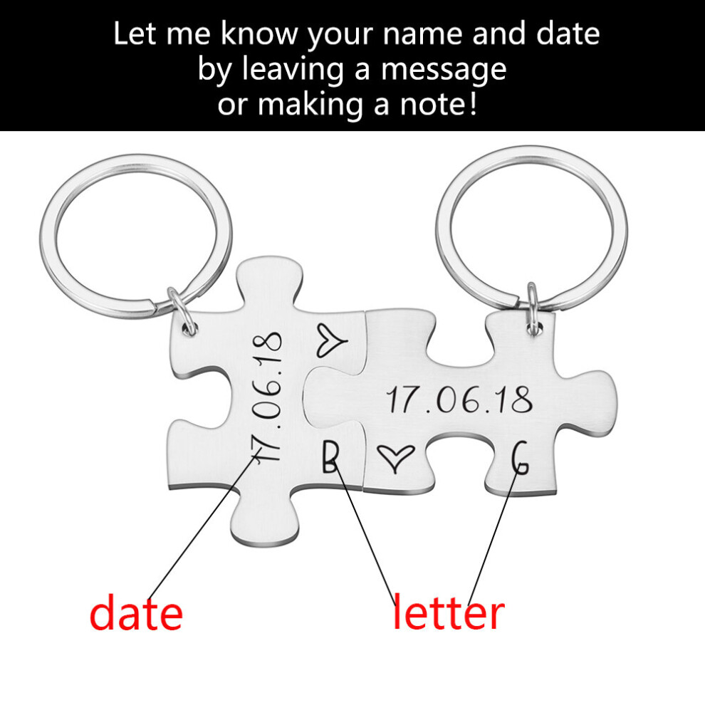 2Pcs Set Personalized Couple Keychains Puzzle Piece Key Chain Engraved Puzzle Key Rings for Boyfriend Girlfriend Valentines Gift
