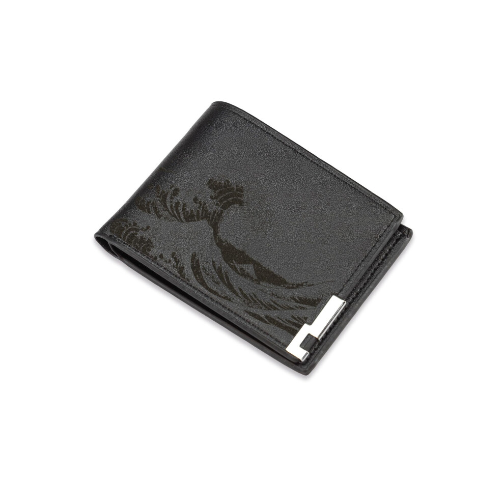 A1 Graphics Ltd Japanese Wave Wallet Vegan Leather Black Brown Grey Kanagawa Leather Wallet Gift for Boyfriend Husband Valentines Day Gift for Him (Black)