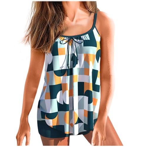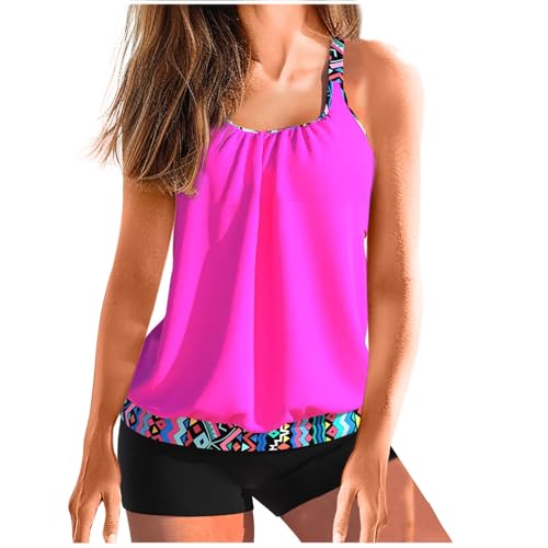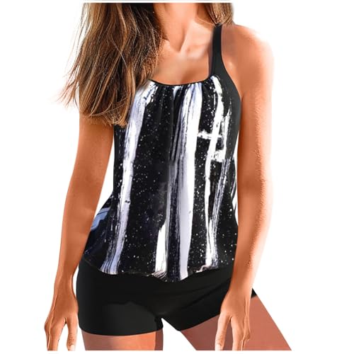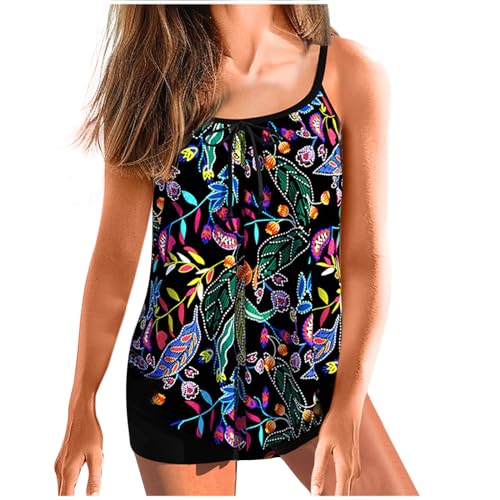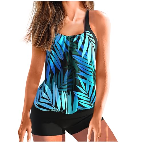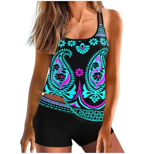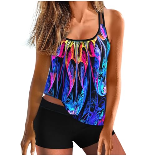 Tankini Sets for Women UK Two Piece Swimsuit Swimwear Sets Tankini with Shorts Sports Tankini Top Ladies Boyleg Tankini Printed Bathing Suit Scoop Neck Tummy Control Swimming Costume with Shorts