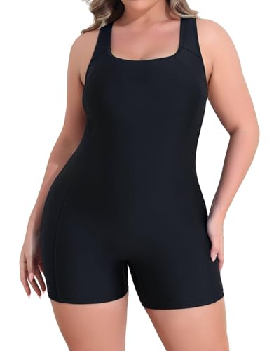 AIGOUT Plus Size Swimwear for Women Tankini Sleeves Boyleg One Piece Swimsuit Sport Swimming Costume Modest Athletic Racerback Swimwear (A, XXL)