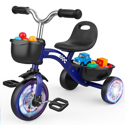 HappyGoLucky Tricycles Toys for 2-5 Year Old Boys Gifts, Kids Balance Bike 2-5 Year Old with 3 Colorful Lighting Wheels & Adjustable Seat, Baby Cycle Trikes Bike Boys Toys Age 2-5 Christmas Xmas Gifts