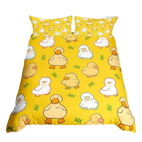 Homewish Cartoon Duck Duvet Cover for Kids Boys Girls,Lovely Yellow Duck Comforter Cover Set,Cute Hand Drawn Goose Bedding Sets King,Lovely Farmhouse Animal Quilt Comforter with 2 Pillowcase