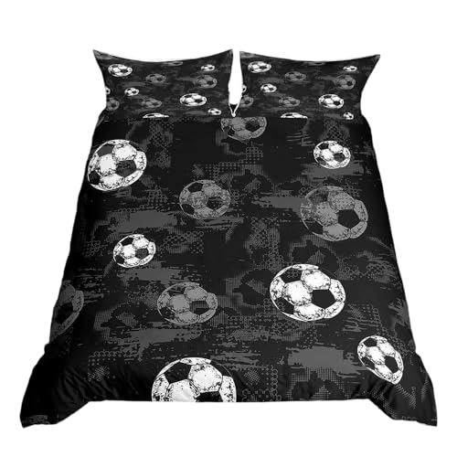 Homewish Football Single Bedding Sets 2 Pieces, Ball Sports Game Kids Duvet Cover Set for Boys Girls Teens, Black White Grey Microfibre Quilt Cover, Abstract Grunge Style Bed Set, Black Reversible
