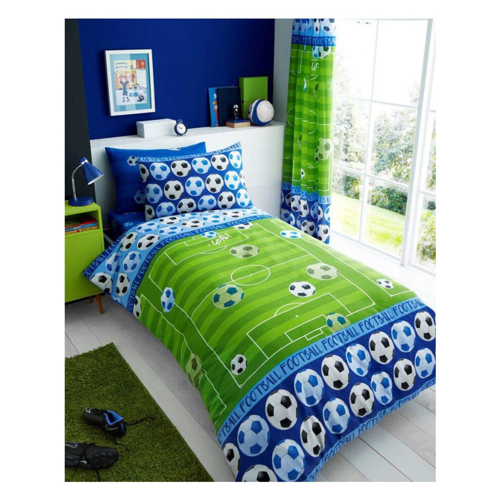 Lions Boys Single Bedding Sets, 2 Piece Goal Football Blue Duvet Cover Set with Pillowcase, Ultra Soft, Reversible Quilt Covers, Poly-Cotton,