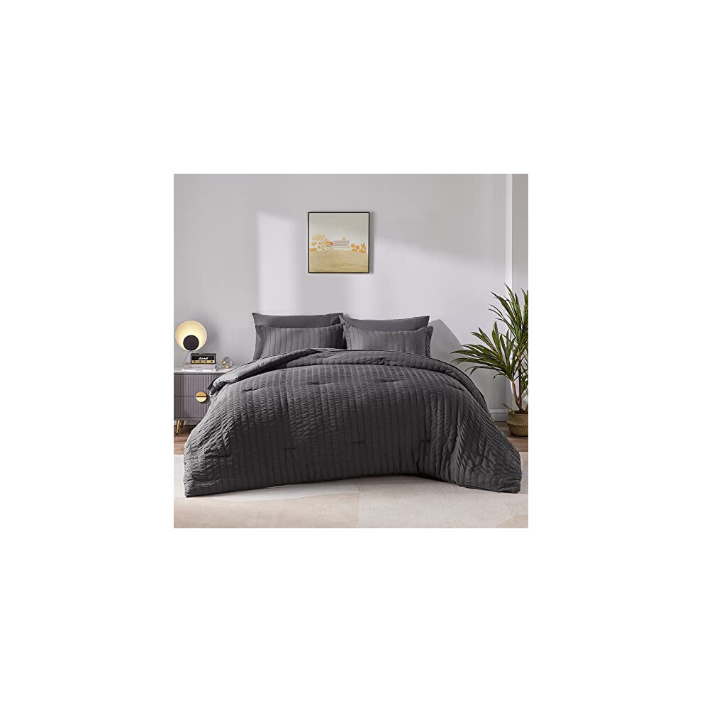 cozyLux Twin Bed in a Bag Dark grey Seersucker Textured comforter Set with Sheets 5-Pieces for girls and Boys - Bedding Sets with comforter Pillow Sh