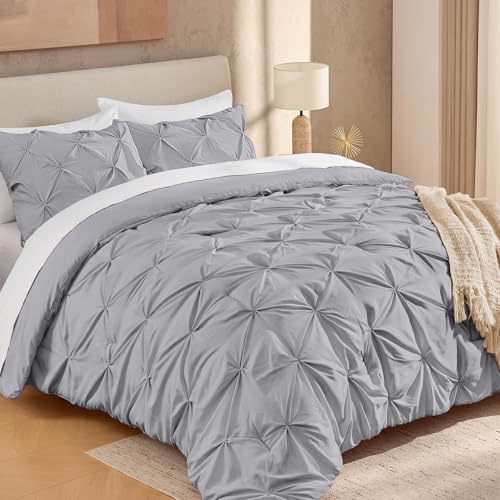 Andency Silver Gray Queen Comforter Set (90x90Inch), 3 Pieces Western Modern Pinch Pleat Bedding Comforters &Sets, All Season Soft Lightweight Down Alternative Bed Set for Boys Men Adults