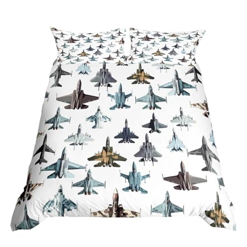 Homewish Fighter Aircraft Single Duvet Cover for Kids Boys, Camouflage Military Jet Print Bedding Set for Youth Men, Army Fighter Jet Duvet Cover Set, Modern Flying Airplane Bed Sets