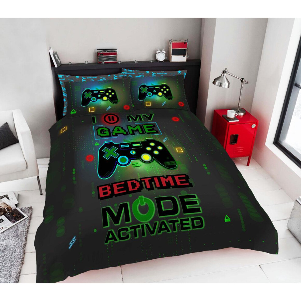 (Single) Duvet sets black gaming quilt cover pillow case boys computer game neon bedding
