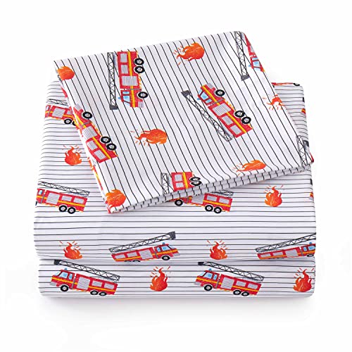 1500 Supreme Kids Bed Sheet Collection - Fun Colorful and Comfortable Boys and Girls Toddler Sheet Sets - Deep Pocket Wrinkle Free Soft and Cozy Bedding - Twin, Fire Engine