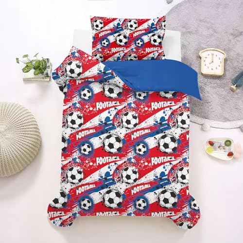 HOMHOMHA Football Single Duvet cover set Kids Bedding Duvet Cover For Teens/boys Soft Bedding Sets Equipped With Duvet Cover 135x200cm And Pillowcase 50x75cm