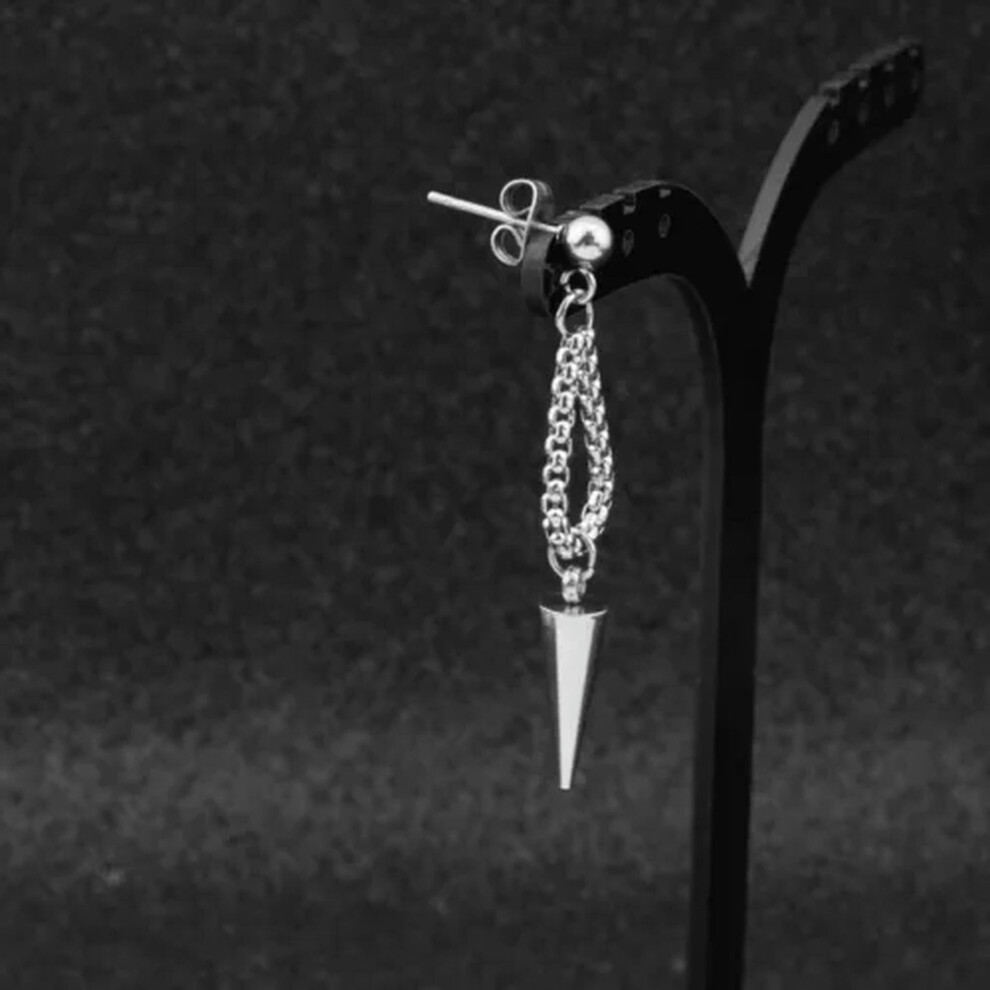 (White) Korea Star Unisex Stainless Steel Punk Earring Clip Chain Tassel Cone Network Red Men Hip-hop Street Pop Rock Boys Stud Earrings