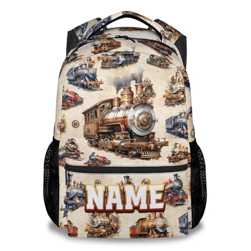 GiftoFLUX Personalised Boys Train Backpack With Name, 17 Inch School Bag For Preschool - Durable Kids Rucksack For Nursery, Kindergarten & Elementary Children, Lightweight Backpack For Boys