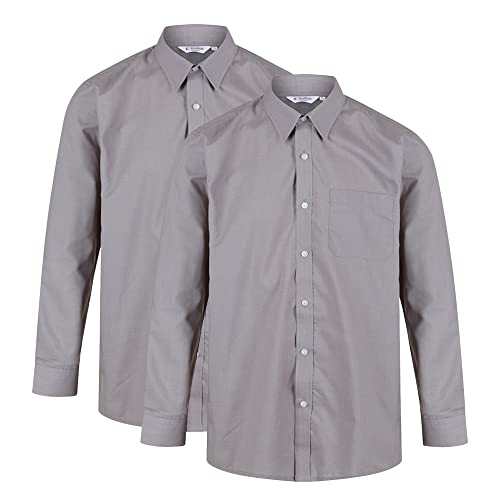 Trutex 2 Pack Long Sleeve Boys School Shirts (3-16+ Years) Durable Boy's Button-Down Shirts, 2 x Non-Iron Long Sleeve School Shirts Boys - Genuine School Uniform Grey