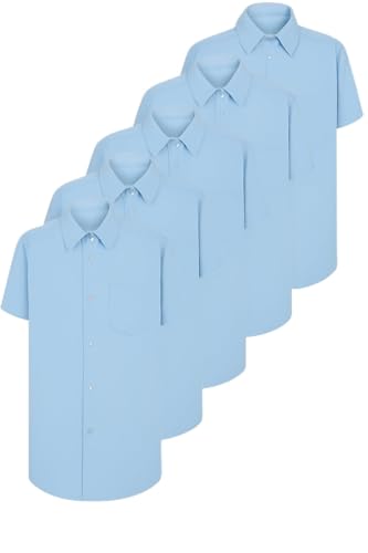 UniMark Pack of 5 Short Sleeve Shirt School Uniform Boys | School Shirts Boys White & Light Blue | Men Workwear Comfortable Shirts (Sky Blue, 14-15 Years)