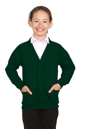Hamishkane® V Neck School Cardigans for Girls and Boys - Long Sleeve Cardigan for School Uniform Girls and Boys, Casual School Shirts Girls and Boys 2-13 Years Bottle Green