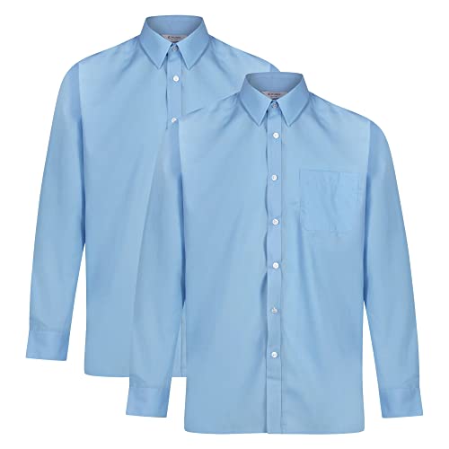 Trutex 2 Pack Long Sleeve Boys School Shirts (3-16+ Years) Durable Boy's Button-Down Shirts, 2 x Non-Iron Long Sleeve School Shirts Boys - Genuine School Uniform Blue