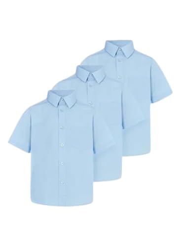 UniMark Pack of 3 Short Sleeve Shirt School Uniform Boys | School Shirts Boys White & Light Blue | Men Workwear Comfortable Shirts (Blue, 5-6 Years)