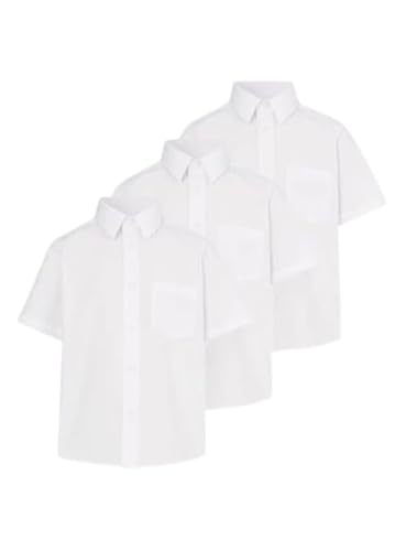 Boys School Shirts Long Sleeve & Short Sleeves in White & Blue Colours Boys Dress Shirts (as8, Age, 13_Years, 14_Years, Regular, White Short Sleeve)