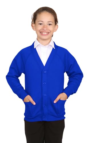 Hamishkane® V Neck School Cardigans for Girls and Boys - Long Sleeve Cardigan for School Uniform Girls and Boys, Casual School Shirts Girls and Boys 2-13 Years Royal Blue