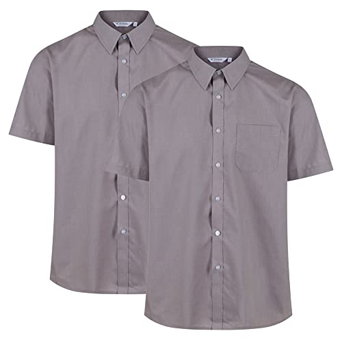 Trutex 2 Pack Short Sleeve School Shirts Boys (3-16+ Years) Non-Iron Boy's Button-Down Shirts, 2 x Boys Short Sleeve School Shirts, Durable Boys School Shirts - Genuine School Uniform Grey