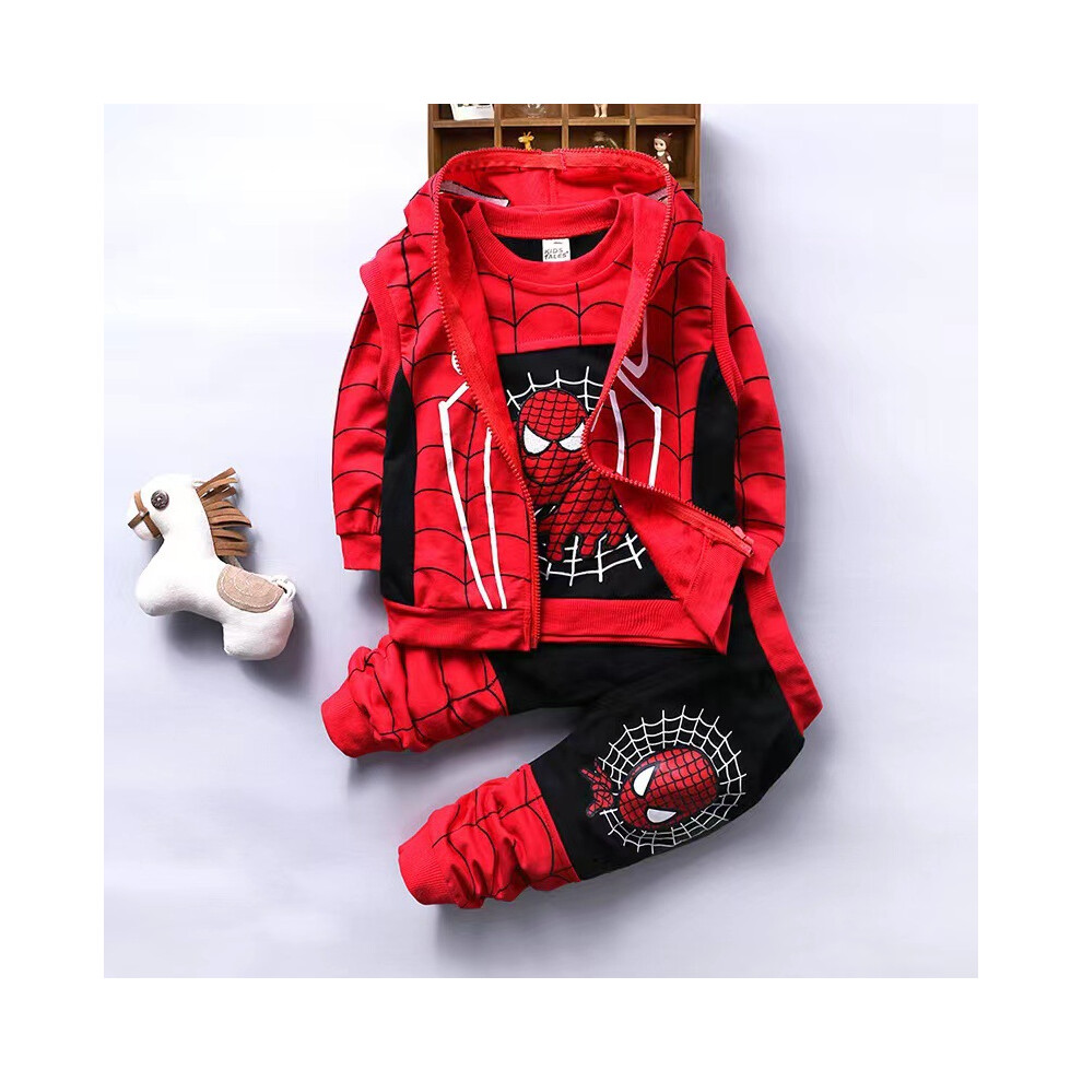 (Black, 100cm) Boys Spiderman Costume Set Hoodie Sweatshirt Trousers Warm 3Pcs Suit for Toddlers Superhero Outfit
