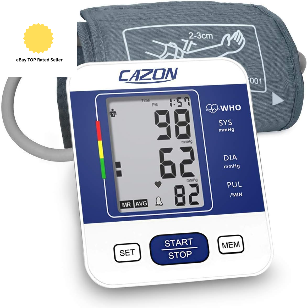 CAZON Upper Arm Blood Pressure Monitor Large Cuff Home Heart Rate BP Machine 22-