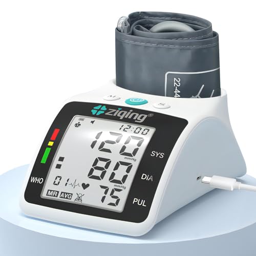 CAZON Blood Pressure Monitors Large Cuff Blood Pressure Machine Medical BP Monitor Upper Arm BP Cuff for Home Use Heart Rate Hypertension Monitor, Cuff 22-40cm LCD Display (Blue)