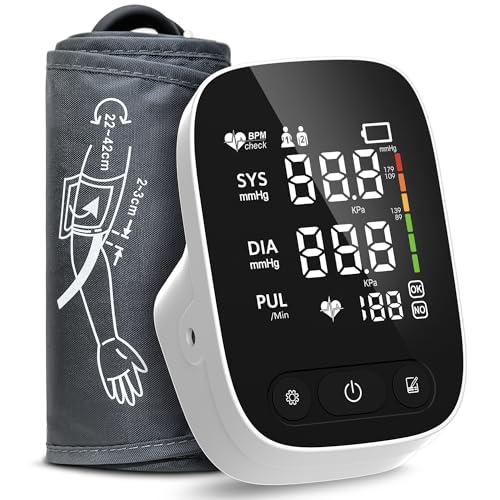 KKmier Blood Pressure Monitor, Upper Arm BP Machine for Home Use Large Cuff 22-42cm, Irregular Heartbeat Detection, 2 * 99 Reading Memory, XL LCD Display with Color Backlits, CE Certified