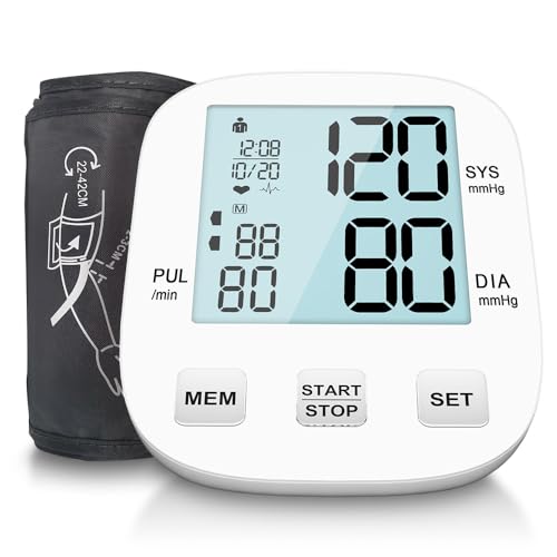 Blood Pressure Monitors BP Monitor Blood Pressure Machine Automatic for Home Use 2x90 Readout 5 Inch Backlit Large Display Heart Rate Hypertension Monitor Cuff 22-42cm (White)