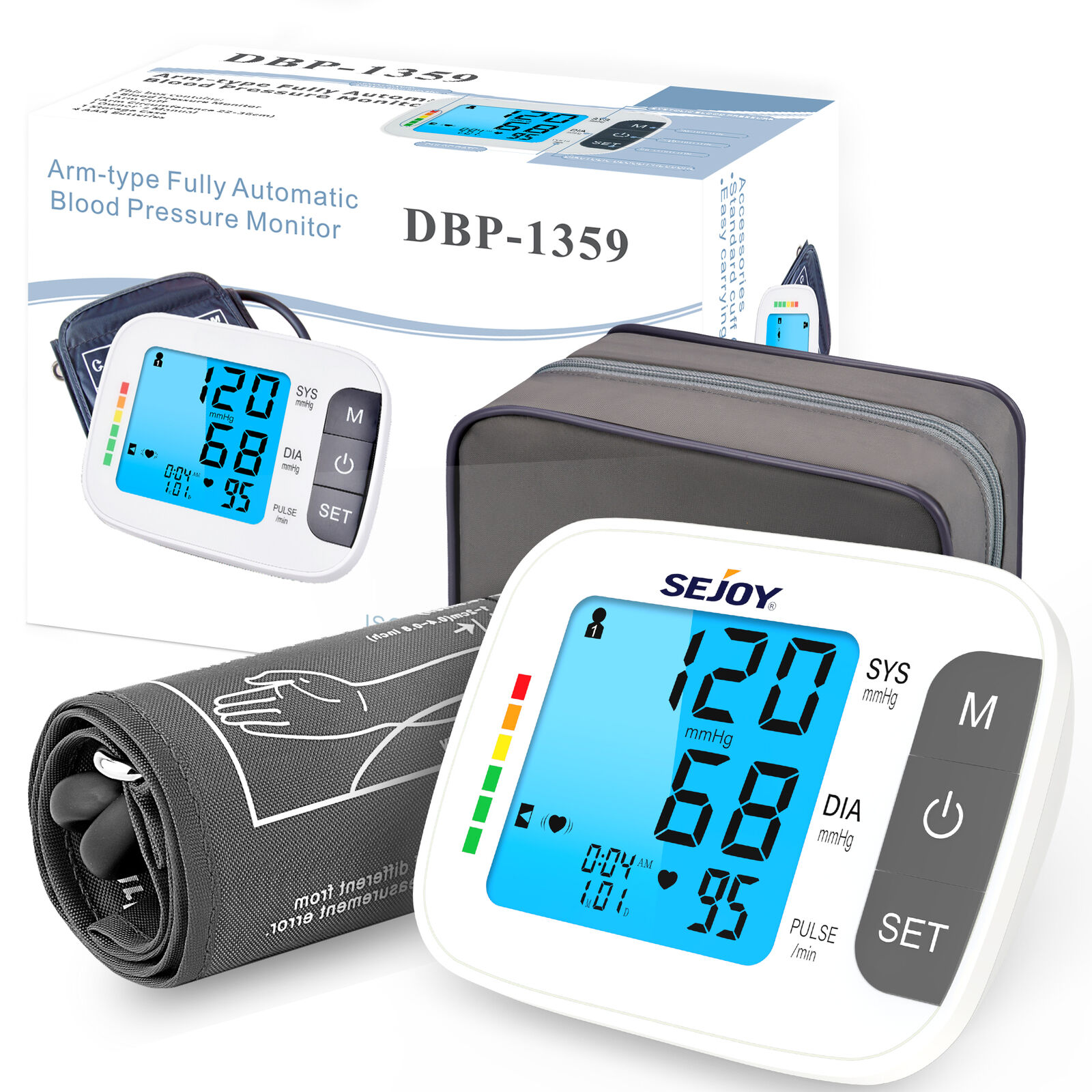 SEJOY Automatic Blood Pressure Monitor Digital Arm Backlit Large Cuff BP Machine