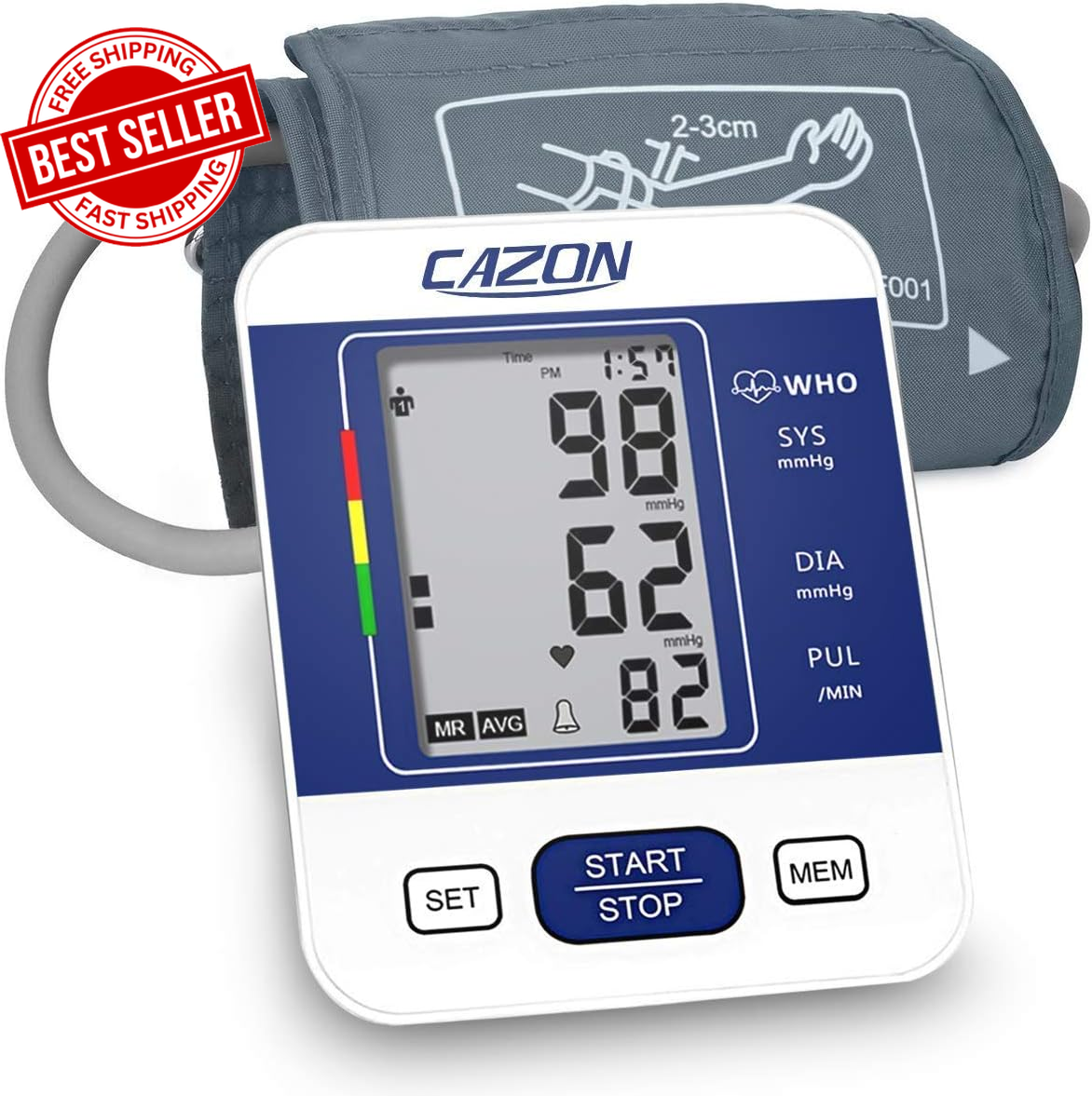 CAZON Blood Pressure Monitor Upper Arm BP Machine for Home Use BP Cuff Kit Puls