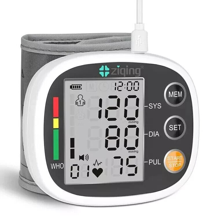 ziqing Wrist Blood Pressure Monitor BP Machine Cuff LCD Heart Rate Tester