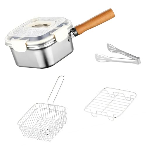Oil Drip Drainer Rack Included Deep Fry Pot, Removable Strainer Rack for Efficient Draining, Japanese Style Uncoated Frying Pan with Heat Preservation