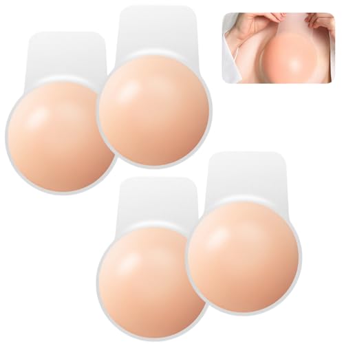 Silicone Pasties Nipple Covers with Lift - 4 Pairs Sticky Bra Push Up Invisible Adhesive Strapless Bras, Reusable Cup Breast Lift Up Stick on Bra for Backless Dress Women Beige