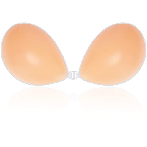 woleeup Sticky Bra Push Up Bras for Women - Silicone Stick on Bras, Invisible Adhesive Bra Reusable Backless Strapless Bras for Wedding Party Dress (UK, Cup & Band, B, Beige)