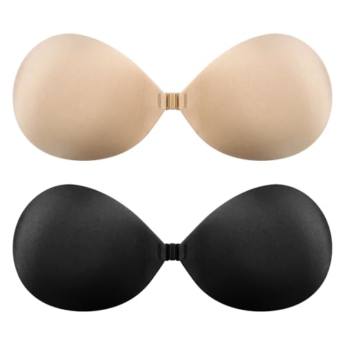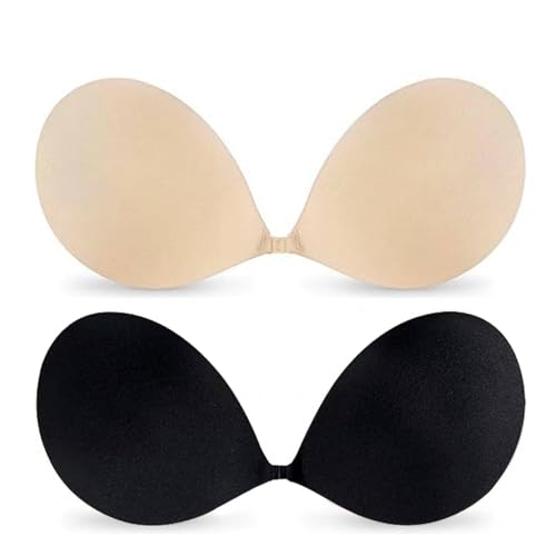 2 Pack Adhesive Bra Backless and Strapless Push Up Bra (Cup A-D) - Invisible and Stick on Bra and Nipple Covers for Backless Dresses Hair