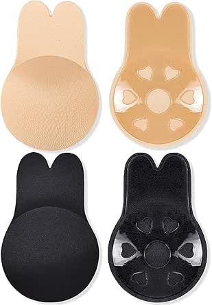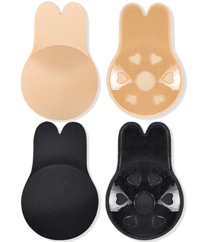 VNIDJGB 2 Pairs Invisible Sticky Boob Lift Bra,Silicone Push Up Nipple Covers, Sticky Bra for large breasts, Strapless Backless Dress bra Pasties Nipple Covers for Girls Women.(Black&Skin)