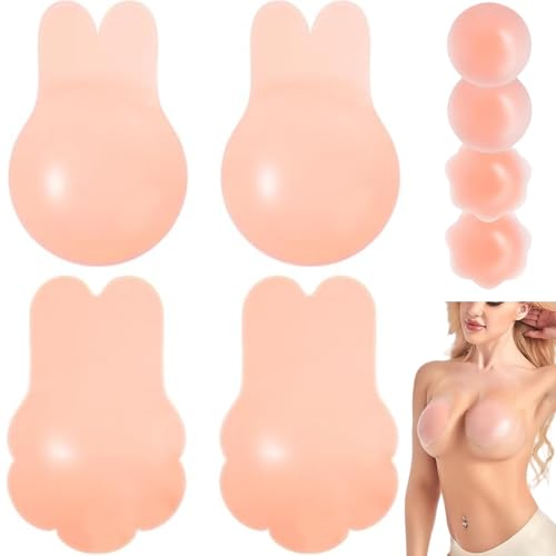 BQQCOB Silicone Pasties Nipple Covers with Lift - 4 Pairs Waterproof Sticky Push Up Bra, Reusable Invisible Adhesive Bras for Women, Strapless Backless Dress Outfits (pink)