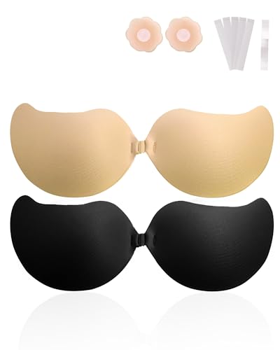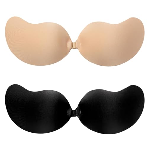 2 Pack Adhesive Bra Backless and Strapless Push Up Bra (Cup A-D) - Invisible and Stick on Bra and Nipple Covers for Backless Dresses